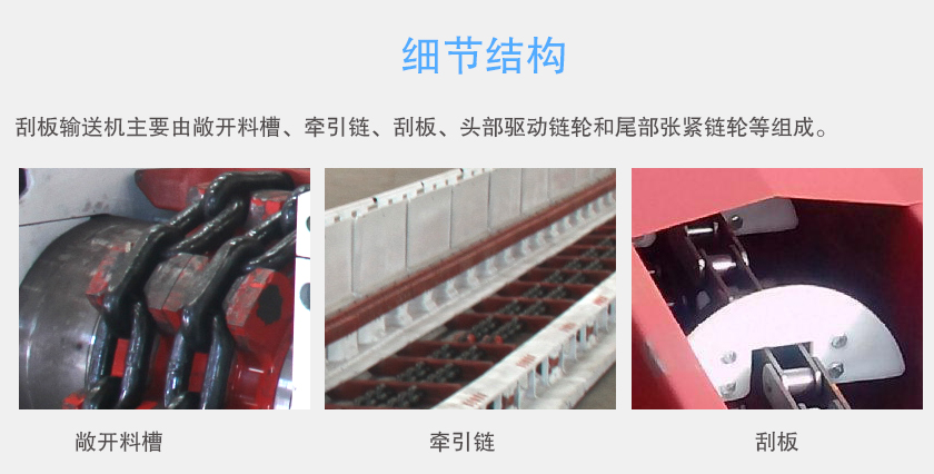 刮板輸送機主要由敞開料槽、牽引鏈、刮板、頭部驅動鏈輪和尾部張緊鏈輪等組成。